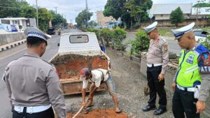 Lampung Utara (Globalasia 48 co.id) – Anggota Satuan Lalu Lintas Polres Lampung Utara, lakukan penimbunan jalan berlubang di ruas Jalan Lintas Sumatera dan Alamsyah RPN, Senin (11/3/2024).