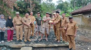 Ketua APDESI Kecamatan Wonosobo mewakili  APDESI Kabupaten Tanggamus  berikan bantuan secara simbolis kepada seorang warga yaitu Subrit (40), pemilik rumah yang terbakar Selasa (6/8/2024). Dok Poto/GA/Suwarno
