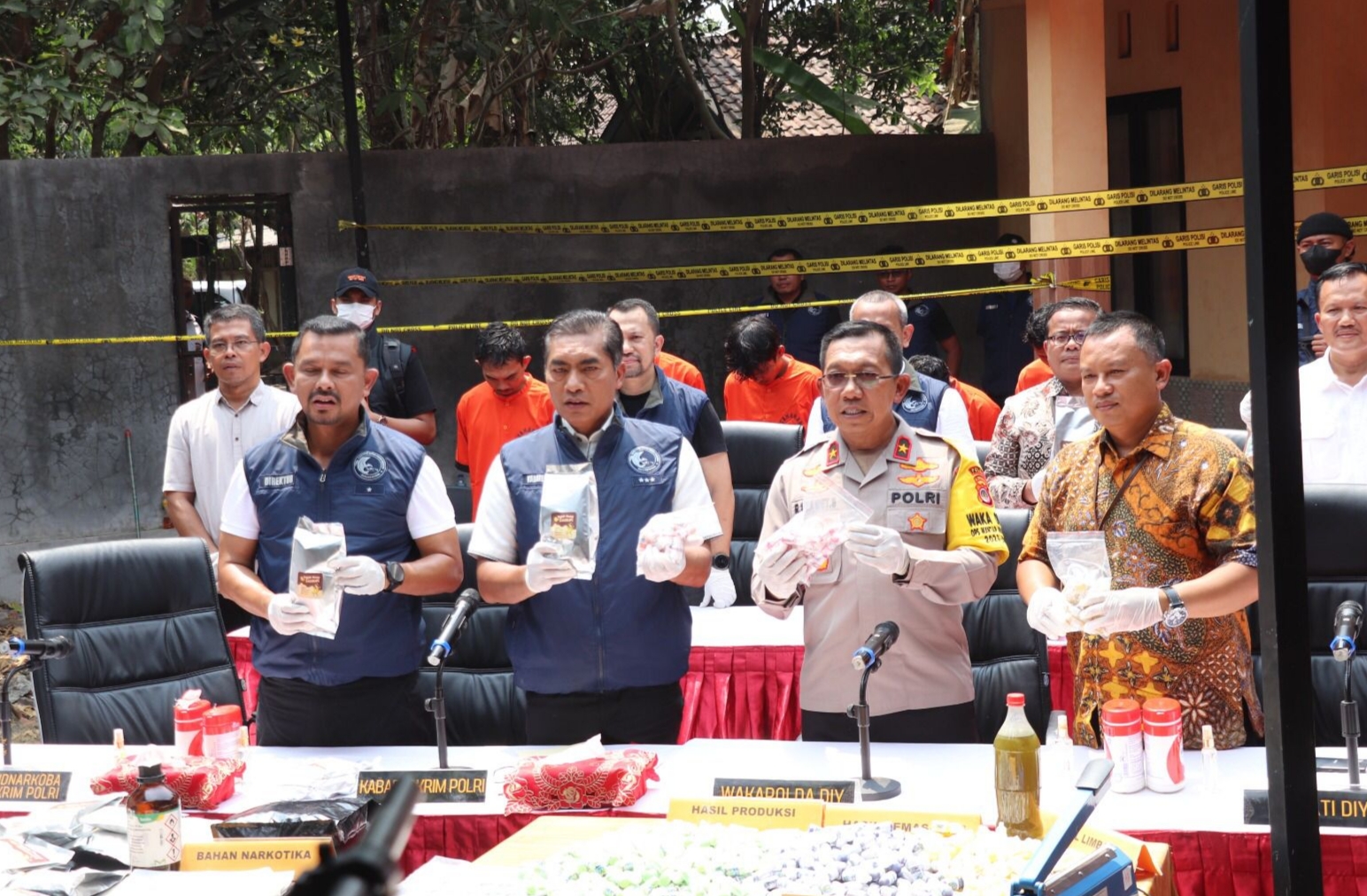 “Selanjutnya kita tangkap dua orang di Kaliaking, Magelang, keduanya produsen keripik pisang. Kemudian kita tangkap dua orang lagi di Potorono yang memproduksi happy water dan keripik pisang dan satu orang kita tangkap di Banguntapan ini,” terangnya.