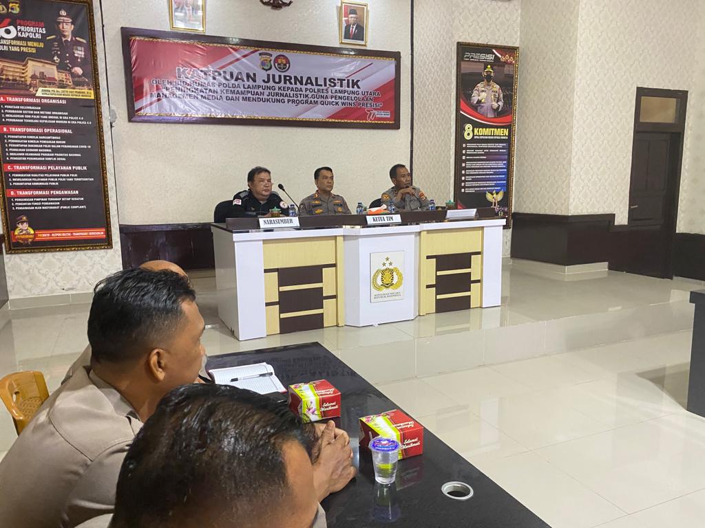 “Untuk Polres Polres Lampung Utara, kegiatan jurnalistik yang merupakan ke tiga belas Polres yang didatangi,”katanya.