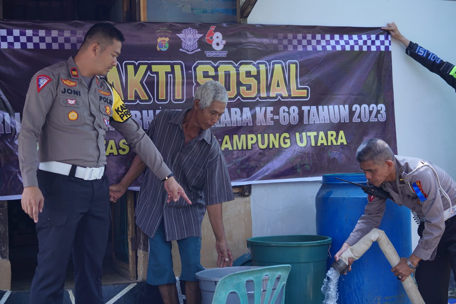 Kapolres Lampung Utara AKBP Teddy Rachesna di dampingi Kasat Lantas Iptu Jhoni Carter, saat dimintai keterangan mengatakan pembagian air bersih tersebut bertujuan untuk meringankan beban masyarakat dalam mencukupi kebutuhan sehari-harinya.