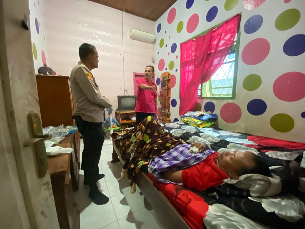Kapolres Lampung Utara AKBP Teddy Rachesna didampingi Kasat Reskrim Iptu Stef Boyoh, KBO Reskrim Ipda M. Agus Patla, mengunjungi korban Ensori Lukman, warga Desa Tulang Bawang Baru Kec. Bunga Mayang, saat ini sedang menjalani berobat jalan bertempat tinggal di rumah salah seorang kerabatnya di Gg. Semeru Kel. Kelapa Tujuh Kec. Kotabumi Selatan.