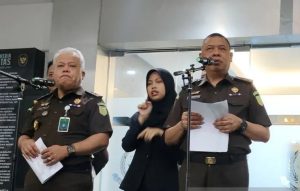 Caption Foto: Kepala Pusat Penerangan Hukum Kejaksaan Agung Arli Siregar dan Direktur Penyidik pada Jaksa Agung Muda Penyidik dalam konferensi Pers di Kantor Kejagung Jakarta. Dok Foto/Antara