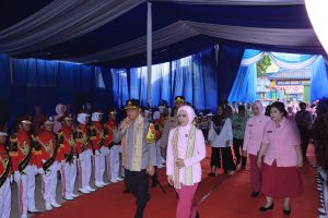 Kapolda Lampung Irjen Pol. Helmy Santika bersama Ketua Pengurus Yayasan Kemala Bhayangkari Lampung Ny. Lurie Helmy Santika ketika hendak meresmikan TK Kemala Bhayangkari Kotabumi, Lampung Utara, Rabu (23/10/2024). Dok Foto/HAR/Humas Polres