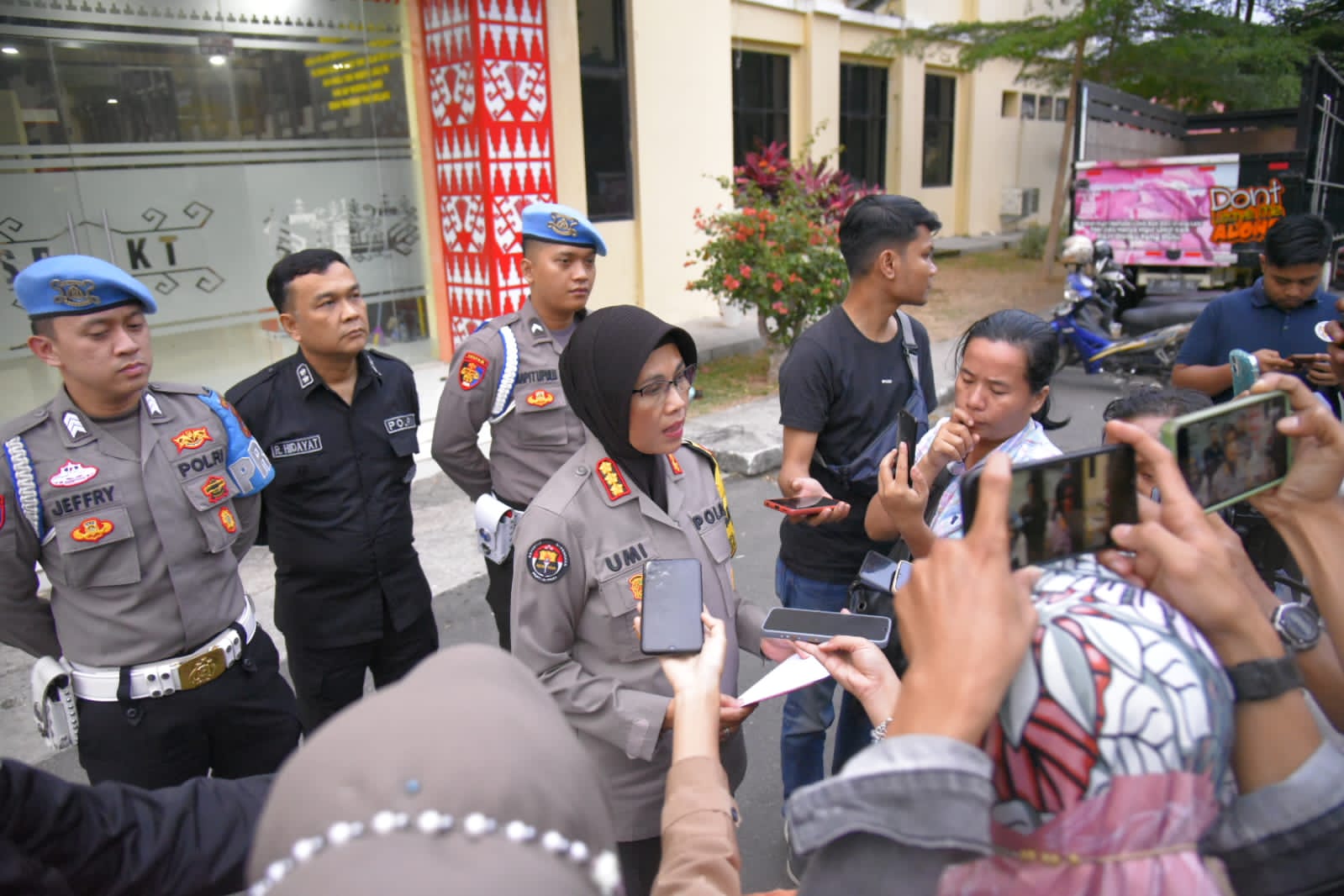 Kabid Humas Polda Lampung Kombes Pol. Umi Fadilah Astuti saat dimintai keterangan awak media dalam sidang kode etik terhadap mantan kasat narkoba AKP AG di Mapolda, Kamis (19/10/2023). Dok/Humas