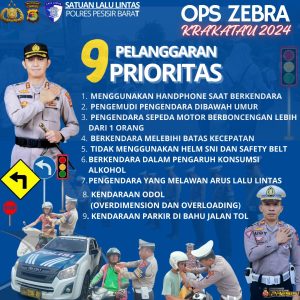 Selama Operasi Zebra Krakatau 2024, akan difokuskan pada penegakan hukum terhadap pelanggaran lalu lintas yang menjadi prioritas. Ada sembilan pelanggaran yang menjadi fokus utama dalam operasi yaitu: