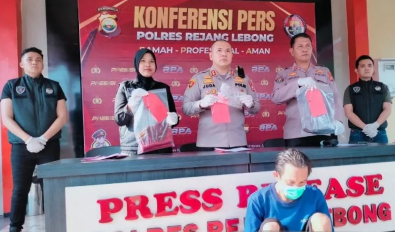 Kapolres Rejang Lebong AKBP Juda Trisno Tampubolon, Sik saat menggelar jumpa pers di Kantor Mapolres setempat,