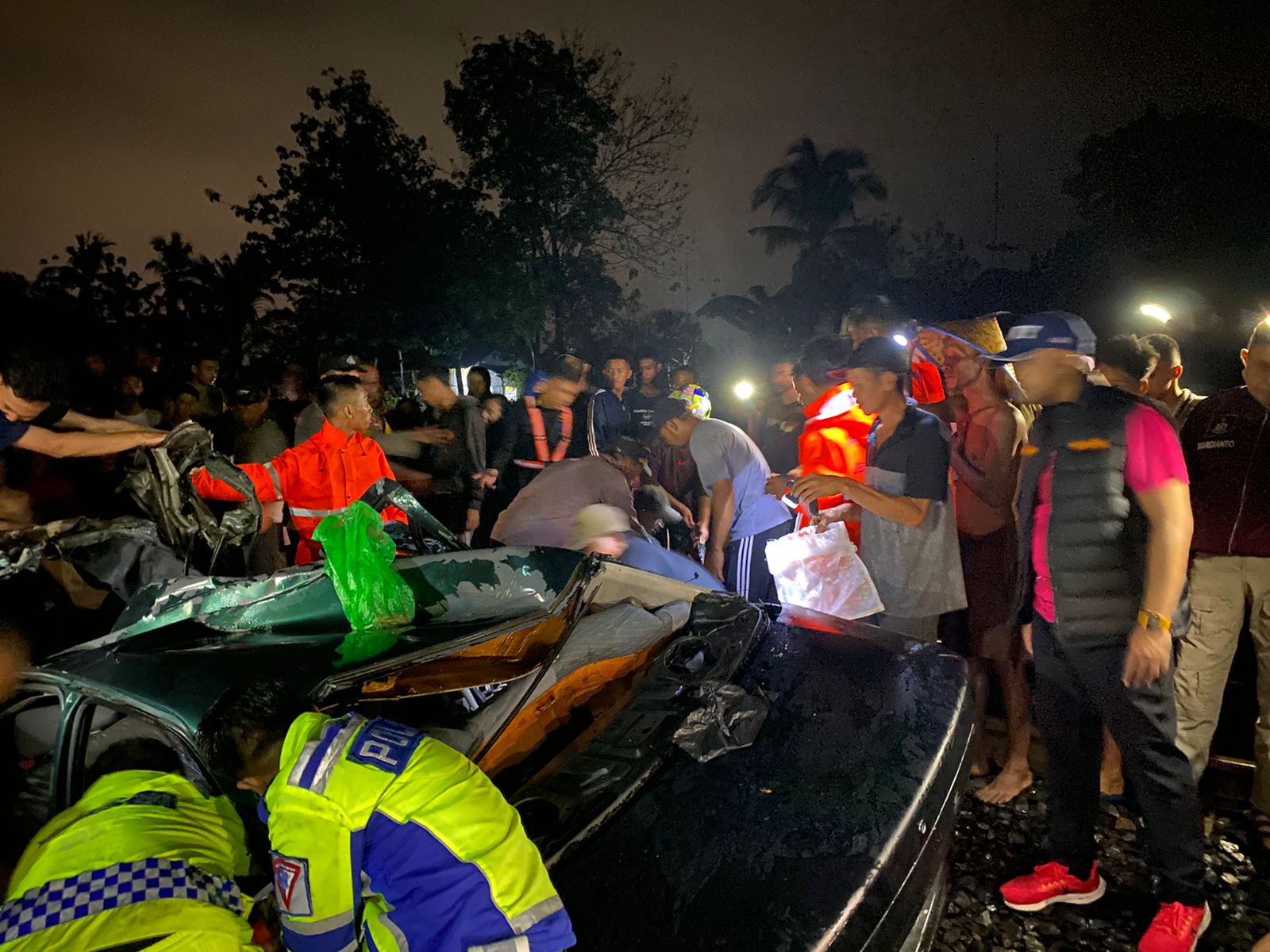 Pada saat bersamaan melaju sebuah mobil Sedan Timor warna Hijau dengan No Pol: BE 1216 JA menyebrang perlintasan Kereta Api tanpa palang pintu seketika tertabrak Kereta sehingga mobil sedan terseret sekitar 541 meter.