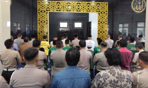 Sholat ghaib dipimpin Ustadz Muryadi dan diikuti Kapolres Lampung Utara AKBP Deddy Kurniawan, Pejabat Utama, komunitas Ojol, mahasiswa, LMS dan anak yatim berikut seluruh personel Lampung Utara.