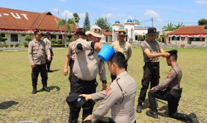 Kabag Ren Kompol Tri Handoko mewakili Kapolres Lampung Utara AKBP Deddy Kurniawan secara langsung menyematkan baret kepada para peserta, menandai resmi bergabungnya mereka sebagai bagian dari keluarga besar Sat Samapta Polres Lampung Utara.