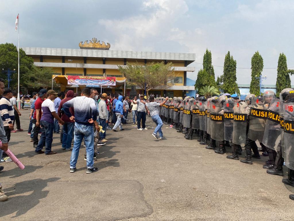 Lampung Utara (Globalasia 48 co.id) – Kepolisian Resor (Polres) Kabupaten Lampung Utara, Propinsi Lampung, menggelar simulasi atau memperagakan sistem pengamanan kota (Sispamkota) dalam rangka persiapan pengamanan pemilihan umum (Pemilu) serentak Tahun 2024.
