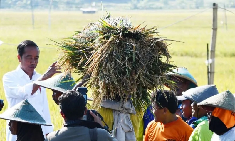 Saat itu, presiden Jokowi pun senang menyaksikan hasil panen raya padi mencapai total 9 ton/hektare di lokasi itu.