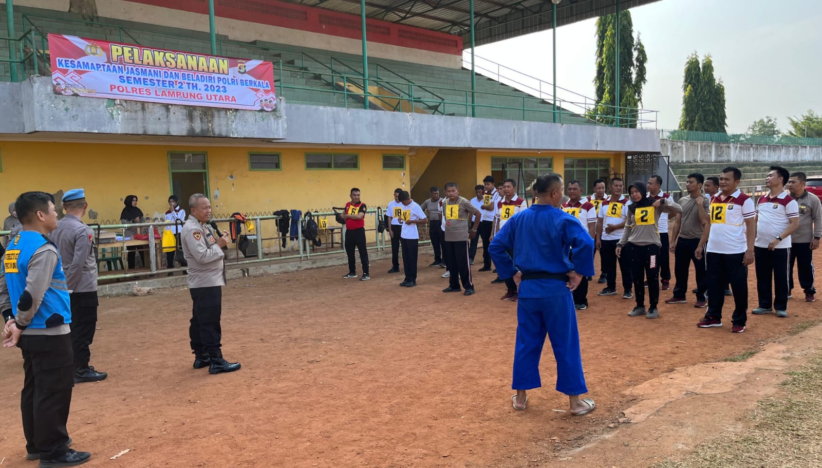 Lampung Utara (Globalasia 48 co.id)- Kepolisian Resor Lampung Utara mengikuti tes kesamaptaan jasmani dan beladiri semester 2 Tahun 2023 di Stadion Sukung daerah setempat, Rabu (20/9/2023).