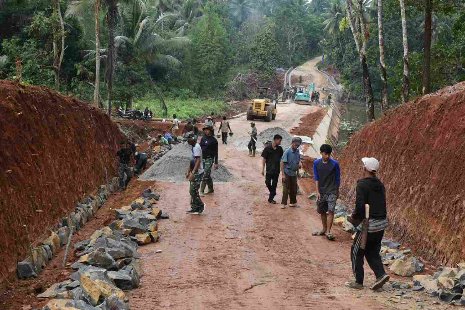 Lampung Utara (Globalasia 48 co.id)- Memasuki hari ke-18 pengerjaan sasaran fisik program TMMD Reguler ke-117 Kodim 0412 Lampung Utara membuka badan jalan menghubungkan Desa Bojong barat dan Desa Kotabumi Tengah Barat, setempat.