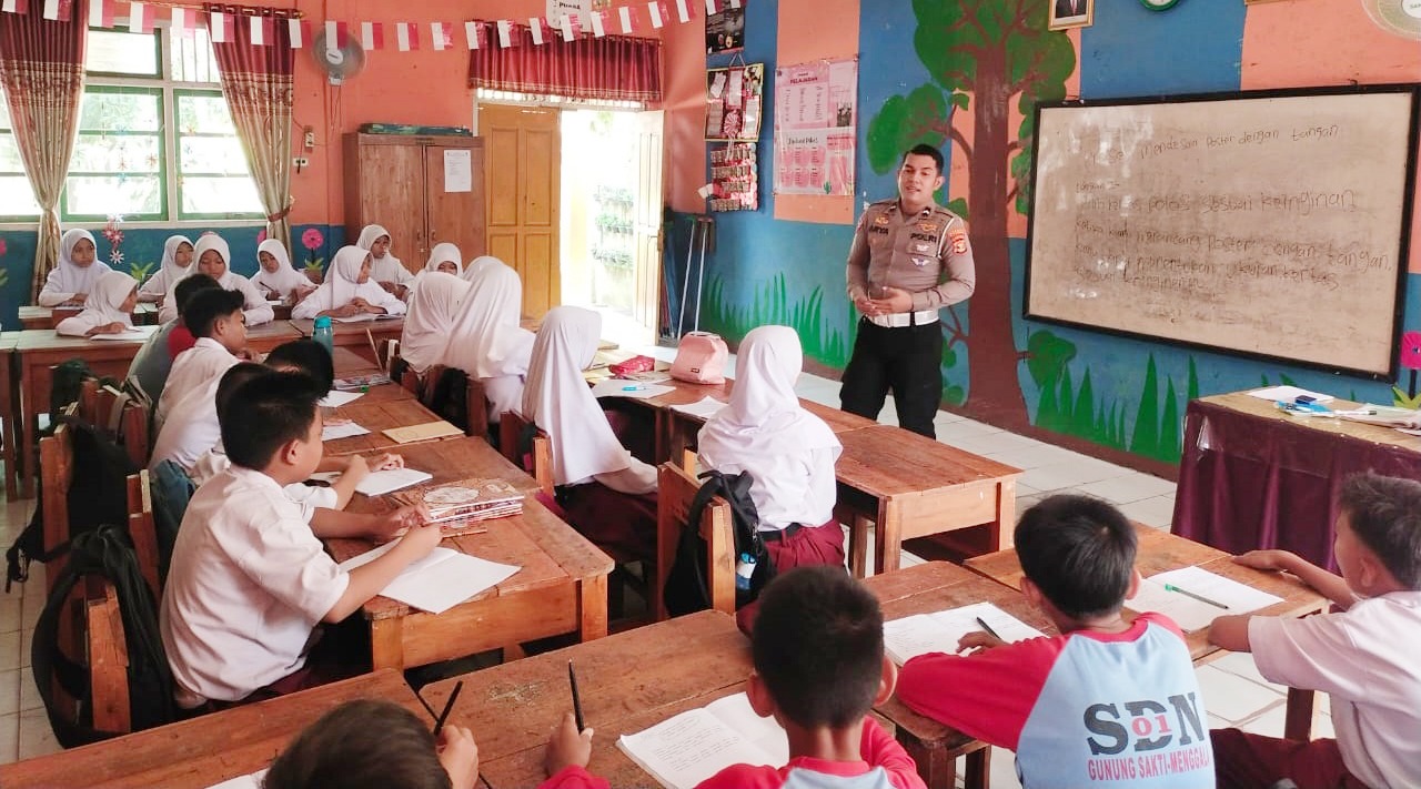 Sat Lantas Polres Tulang Bawang Berikan Edukasi Aturan Berlalu Lintas Pada Pelajar SD