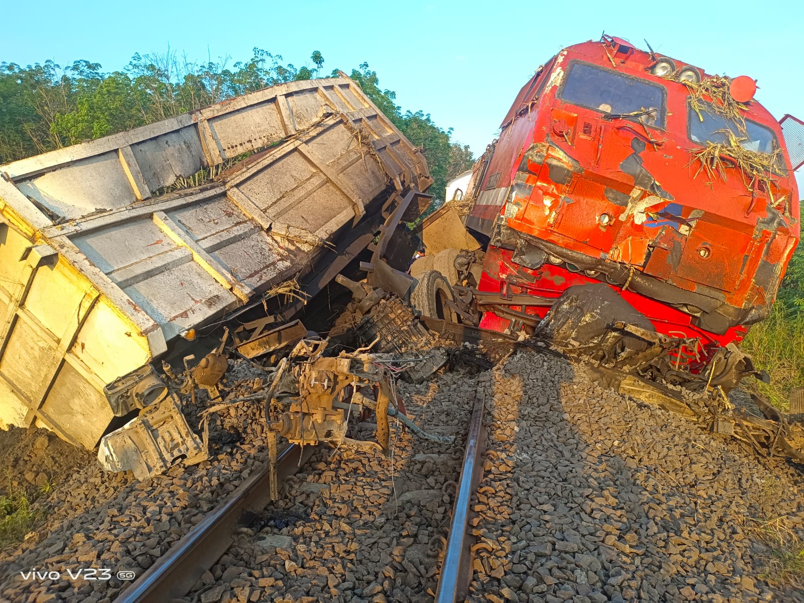 Sebuah Mobil Fuso Mengakut Tebu Tertabrak KA Penumpang Hingga Terseret 100 Meter