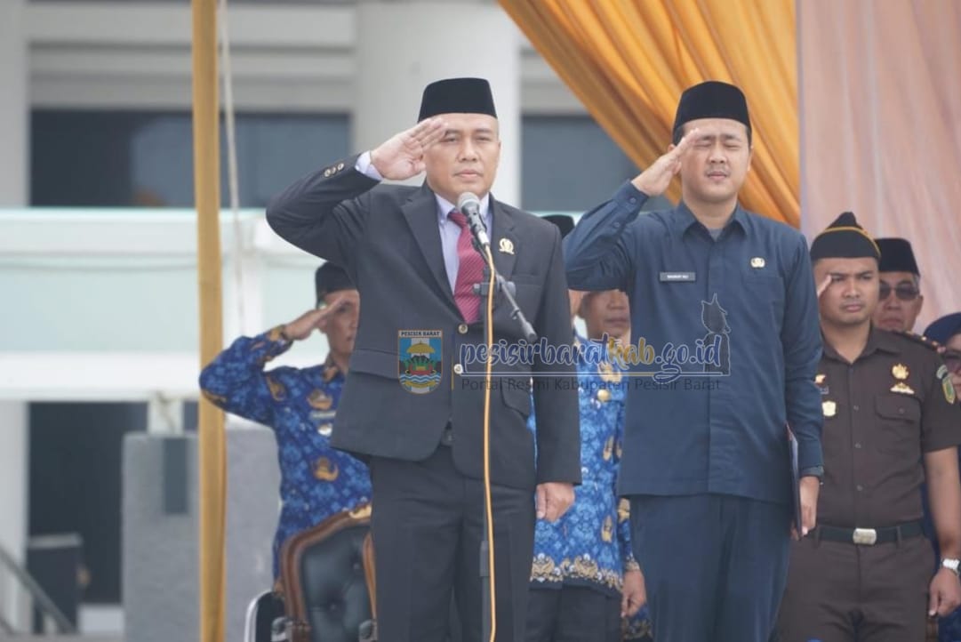 Wakil Ketua DPRD Pesisir Barat Ali Yudiem sebagai pemimpin upacara Hari Pahlawan Ke-78 di Halaman Kantor Pemkab setempat, Jum'at (10/11/2023). Dok/Riswan