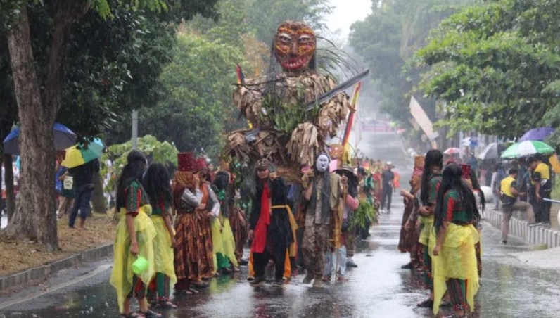 “Karena pawai kali ini temanya topeng jadi kami modifikasi menjadi topeng tikau, dan kali ini ada cerita yang disisipkan saat pawai yaitu menceritakan petani yang membasmi ‘cadang-cadang’ (hama),” katanya.
